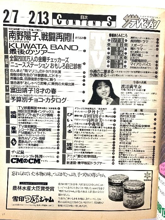 3 ザテレビジョン 中部版 1987 2・13 NO.6 渡辺満里奈 南野陽子 明石家さんま 田原俊彦 松田聖子
