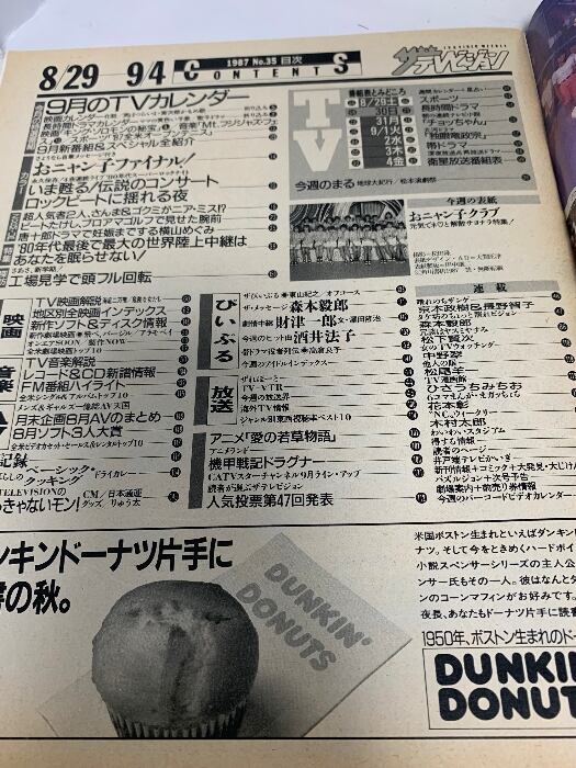 5 ザテレビジョン 中部版 1987 9・4 NO.35 おニャン子クラブ 荻野目洋子 明石家さんま 後藤久美子 ビートたけし
