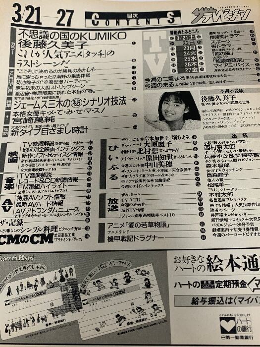 7 ザテレビジョン 中部版 1987 3・27 NO.12 後藤久美子 菊池桃子 明石家さんま 南野陽子