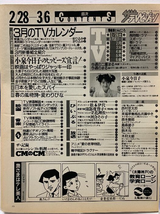 11 ザテレビジョン 中部版 1987 3・6 NO.9 後藤久美子 河合その子 菊池桃子 立花理佐