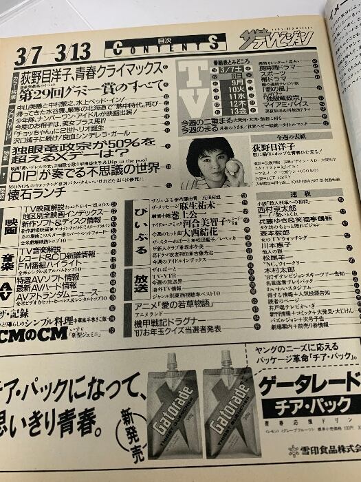 15 ザテレビジョン 中部版 1987 3・13 NO.10 荻野目洋子 中山美穂 水谷豊 麻生祐未 明石家さんま