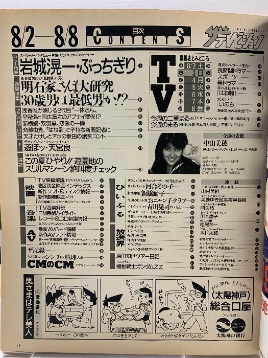 20 ザテレビジョン 中部版 1986 8・8 NO.31 おニャン子クラブ 田原俊彦 吉川晃司 斉藤由貴 岩城滉一