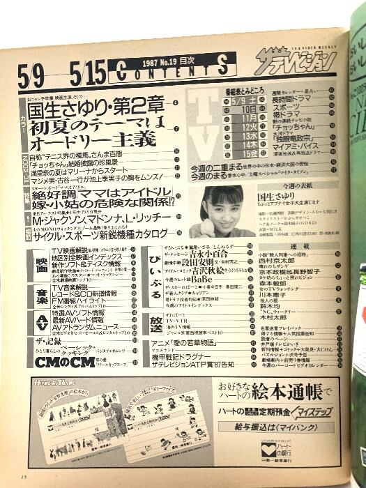 27 ザテレビジョン 中部版 1987 5・15 NO.19 国生さゆり マドンナ マイケルジャクソン 明石家さんま 小泉今日子