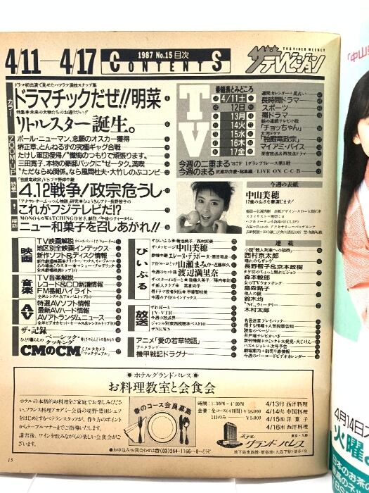 28 ザテレビジョン 中部版 1987 4・17 NO.15 中山美穂 中森明菜 後藤久美子 渡辺満里奈 西村京太郎