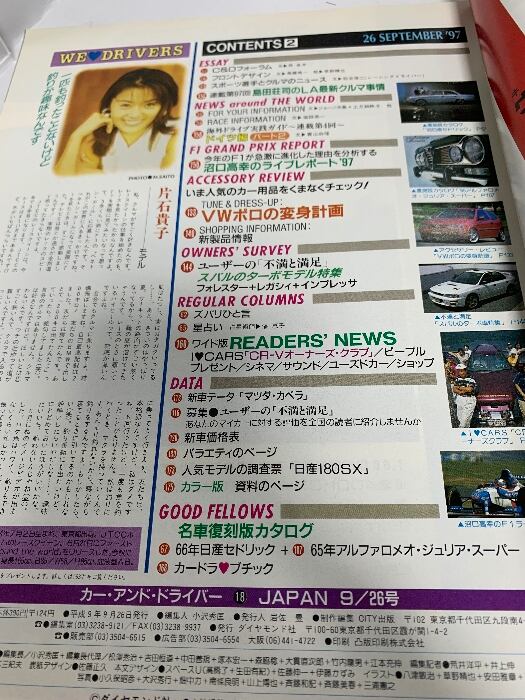 18 CAR and DRIVER カー アンド ドライバー 1997 9・27 日本版 特集1 小型サルーンの味わいを楽しむ 特集2 新型モデルの実力を比較チェック