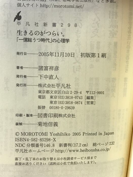 生きるのがつらい。: 「一億総うつ時代」の心理学 (平凡社新書 298) 平凡社 諸富 祥彦