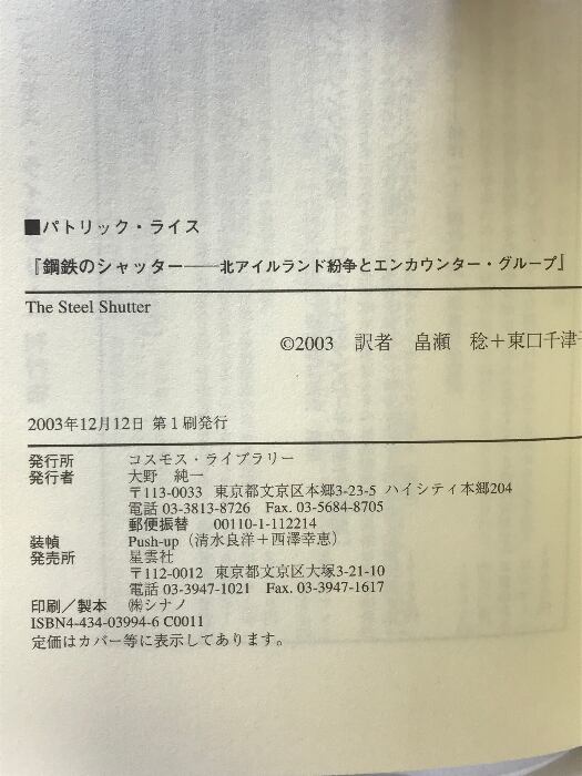 タイトル:鋼鉄のシャッタ-: 北アイルランド紛争とエンカウンタ-・グル-プ コスモス・ライブラリー パトリック ライス