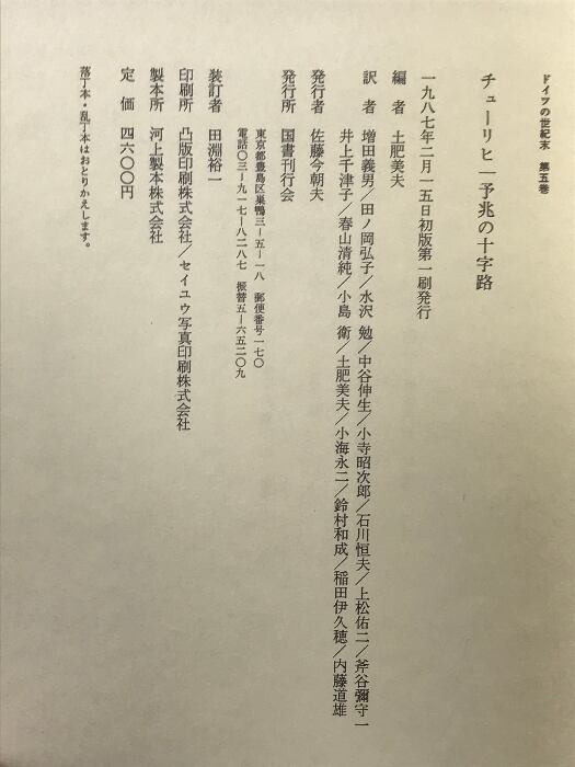 タイトル:ドイツの世紀末 第5巻 チューリヒ予兆の十字路 国書刊行会 土肥美夫:編