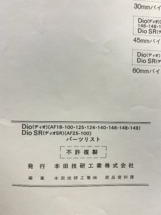 タイトル:HONDA Dio(ディオ)DioSR(ディオSR) パーツリスト 管理NO.11GW0JJ5 発行:平成2年 5版