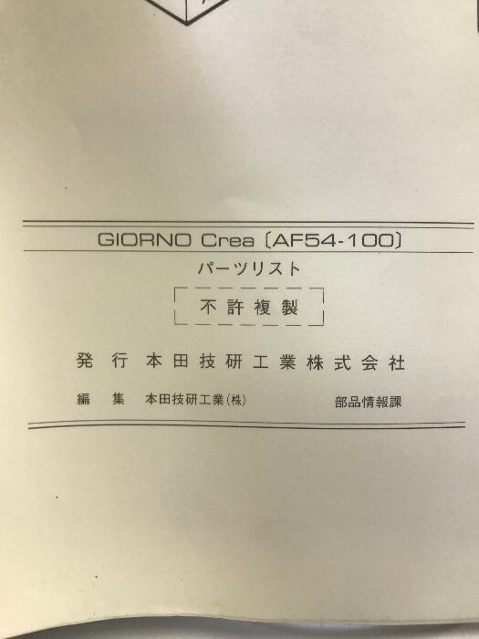 タイトル:HONDA GIORNO Crea (CHX50X AF54-100) パーツリスト 管理NO.11GEEXJ1 発行:平成11年 1版