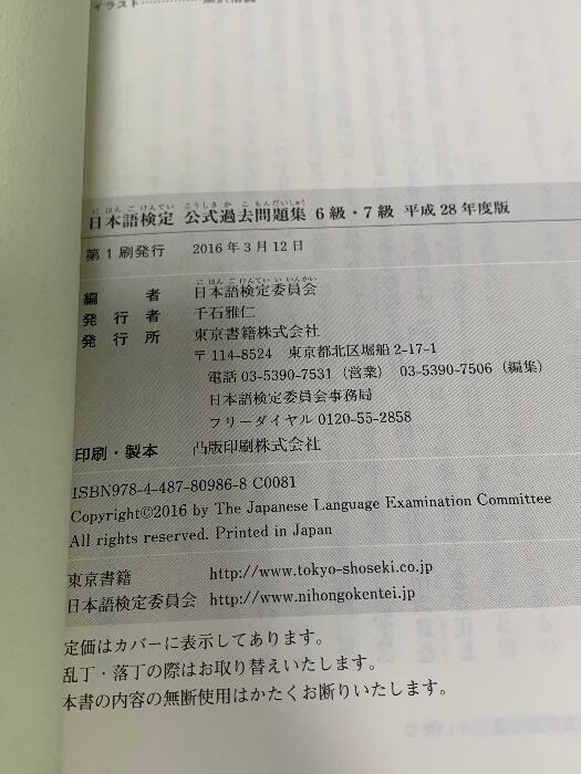 日本語検定公式過去問題集 6級・7級 平成28年度版 東京書籍 日本語検定委員会