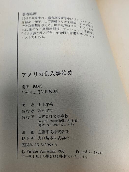 タイトル:アメリカ乱入事始め 文藝春秋 山下 洋輔