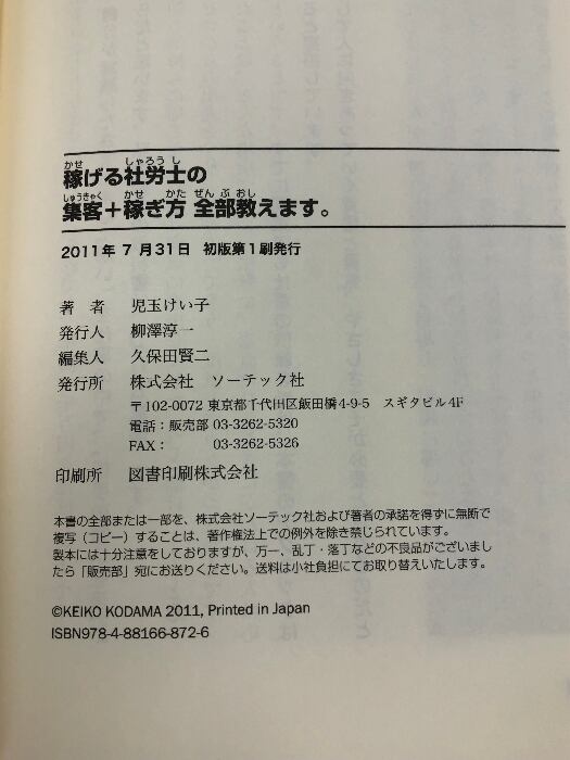 タイトル:稼げる社労士の集客+稼ぎ方 全部教えます。 ソーテック社 児玉 けい子