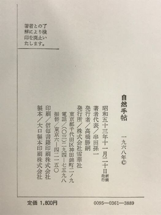 自然手帖 雪華社 串田孫一 他