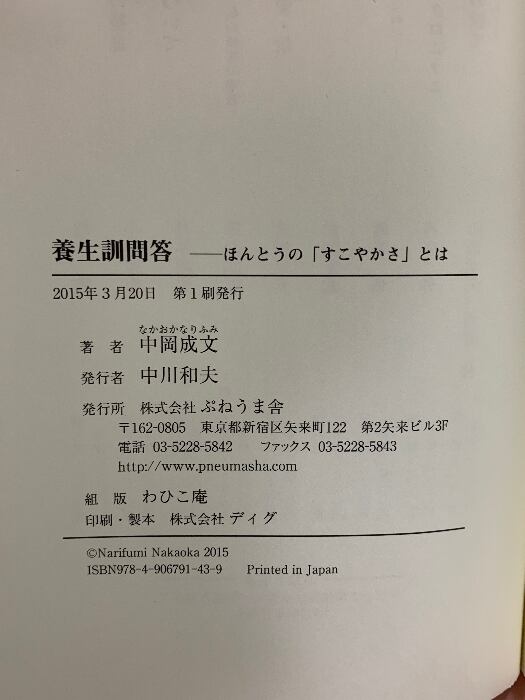 タイトル:養生訓問答: ほんとうの「すこやかさ」とは ぷねうま舎 中岡成文