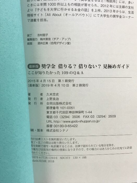 タイトル:最新版 奨学金 借りる? 借りない? 見極めガイド: ここが知りたかった109のQ&A 合同出版 久米忠史