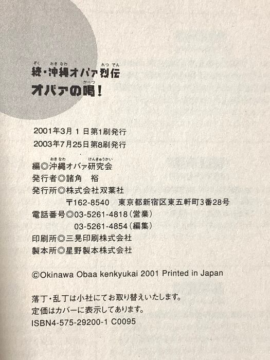 タイトル:オバァの喝: 続・沖縄オバァ烈伝 双葉社 沖縄オバァ研究会