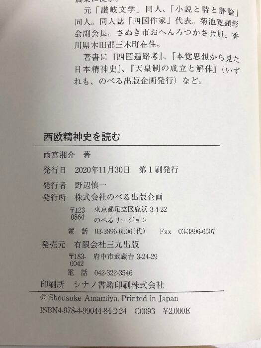 タイトル:西欧精神史を読む のべる出版企画 雨宮 湘介