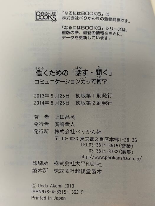 タイトル:働くための「話す・聞く」 コミュニケーション力って何? (なるにはBOOKS) ぺりかん社 上田 晶美