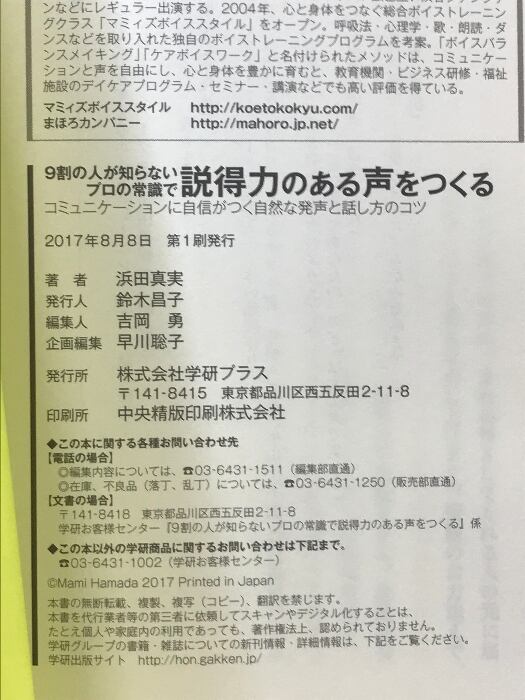 タイトル:9割の人が知らないプロの常識で説得力のある声をつくる 学研プラス 浜田真実