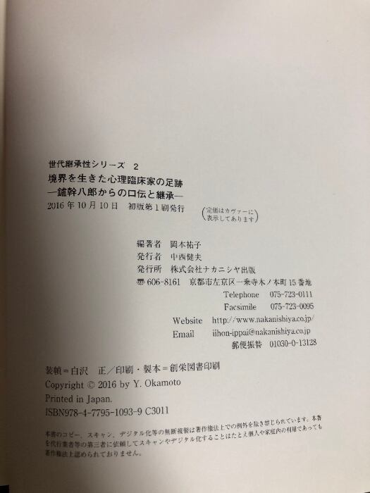タイトル:境界を生きた心理臨床家の足跡 ナカニシヤ出版 岡本 祐子