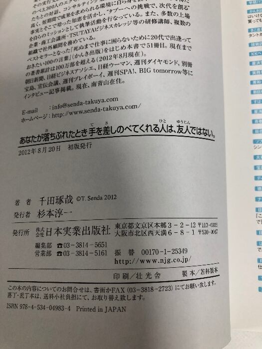 タイトル:あなたが落ちぶれたとき手を差しのべてくれる人は、友人ではない 日本実業出版社 千田 琢哉