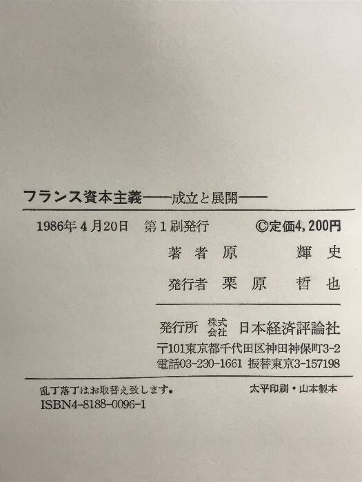 タイトル:フランス資本主義―成立と展開 日本経済評論社 原 輝史