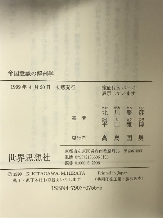 帝国意識の解剖学 (世界思想ゼミナール) 世界思想社教学社 北川 勝彦