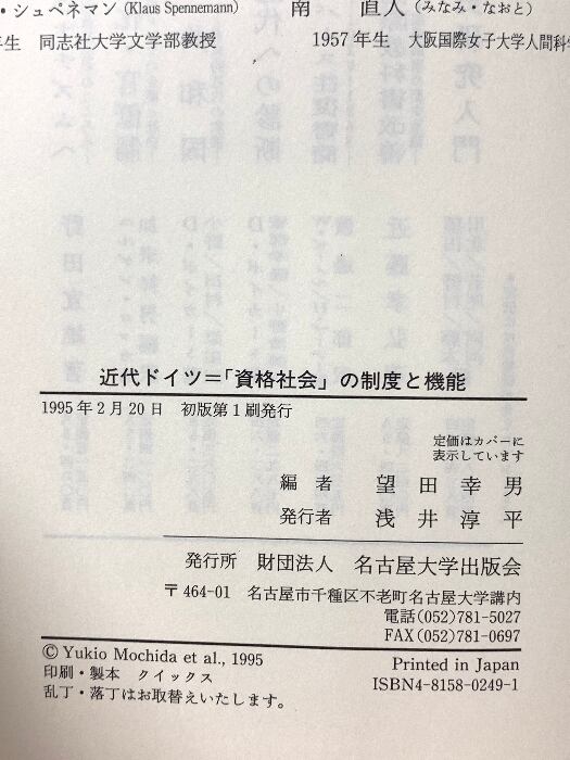 タイトル:近代ドイツ「資格社会」の制度と機能 名古屋大学出版会 望田 幸男