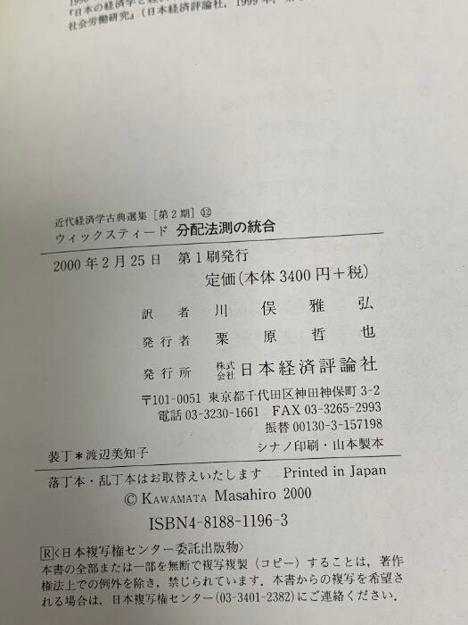 タイトル:分配法則の統合 (近代経済学古典選集 第 2期12) 日本経済評論社 ウィックスティード