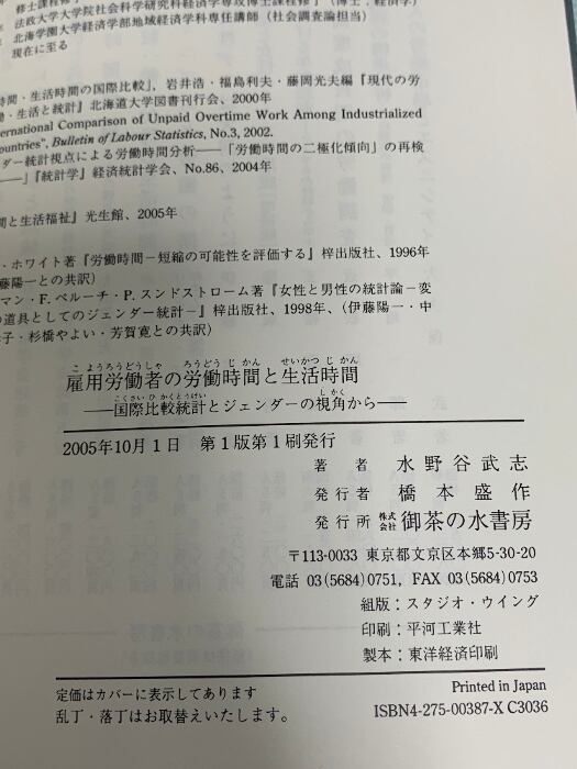 タイトル:雇用労働者の労働時間と生活時間: 国際比較統計とジェンダーの視角から 御茶の水書房 水野谷 武志