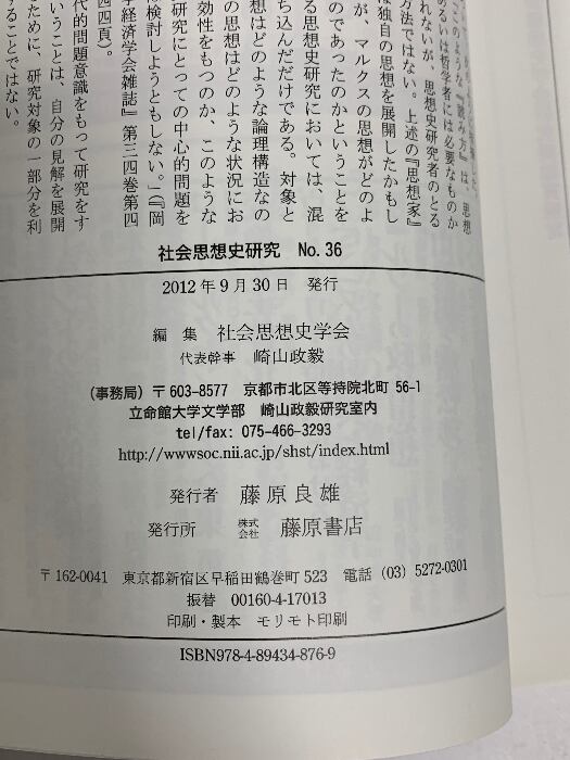 〔社会思想史学会年報〕社会思想史研究 no.36 [特集]〈都市〉と〈災厄〉をめぐって 藤原書店 社会思想史学会