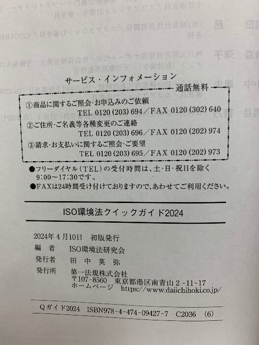 タイトル:ISO環境法クイックガイド2024 第一法規株式会社 ISO環境法研究会