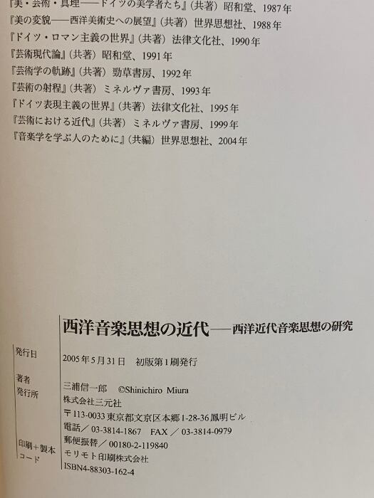 タイトル:西洋音楽思想の近代: 西洋近代音楽思想の研究 三元社 三浦 信一郎