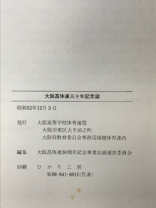 タイトル:三十年記念誌 大阪高等学校体育連盟 昭和52年 大阪市