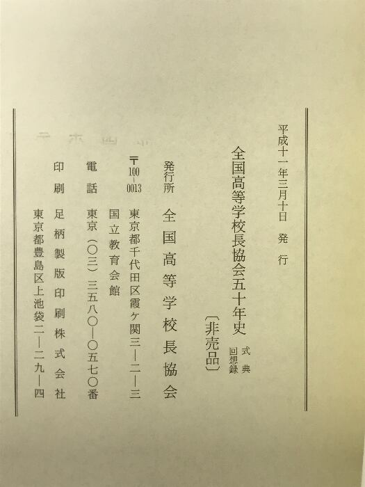 タイトル:全国高等学校長協会五十年史 (式典・回想録)平成11年 【非売品】
