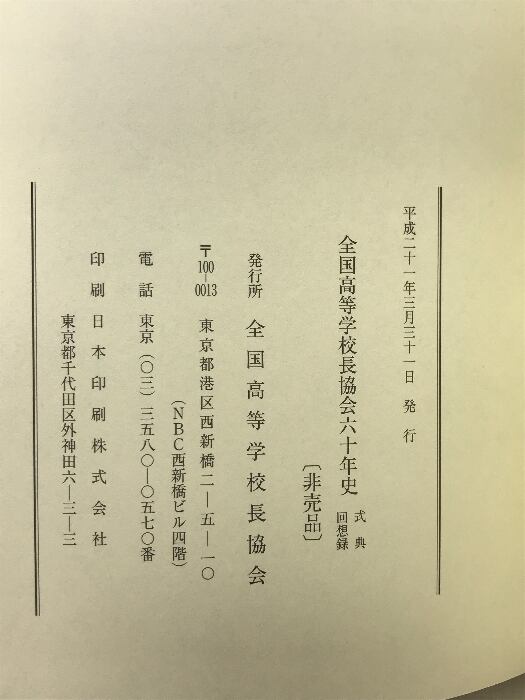 タイトル:全国高等学校長協会六十年史 (式典・回想録)平成21年 【非売品】