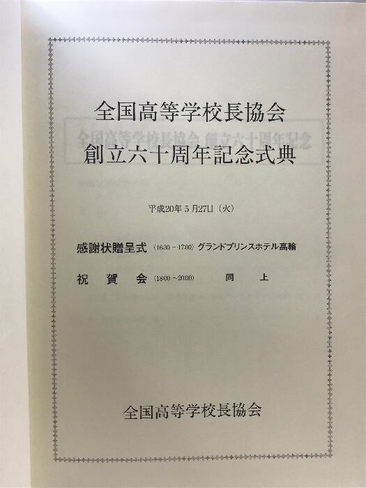 全国高等学校長協会六十年史 (式典・回想録)平成21年 【非売品】
