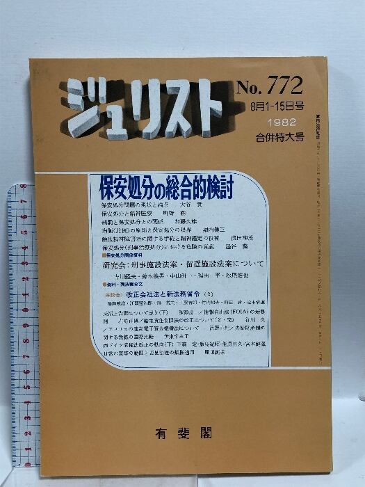 タイトル:ジュリスト 保安処分の合的検討 772号 1982年8月1日・15日号 合併特大号 有斐閣