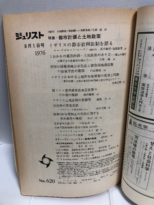 ジュリスト 都市計画と土地政策 620号 1976年9月1日号 有斐閣