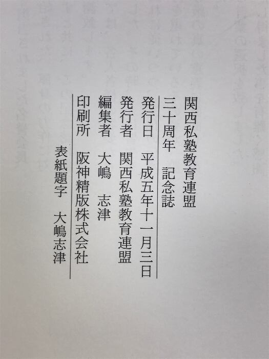 タイトル:三十周年記念誌 関西私塾教育連盟 平成5年