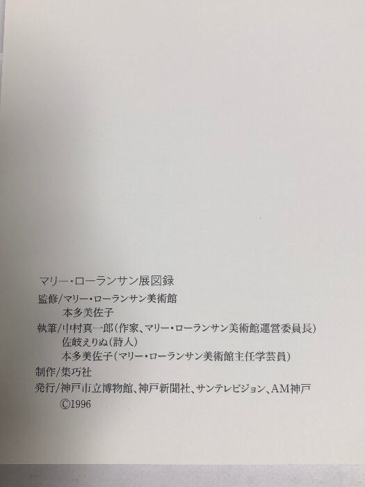 図録 マリー・ローランサン展 1996 神戸市立博物館 神戸新聞社 サンテレビジョン AM神戸