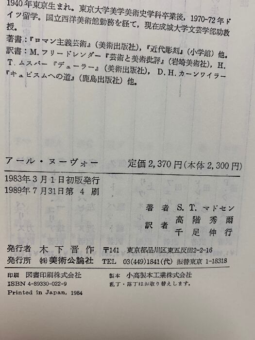 タイトル:アール・ヌーヴォー 美術公論社 S.T.マドセン
