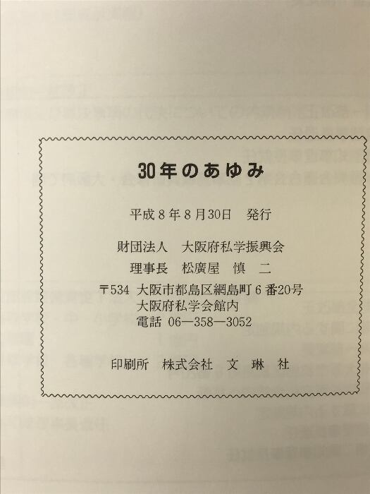 30年のあゆみ 財団法人 大阪府私学振興会 平成8年 (大阪府)