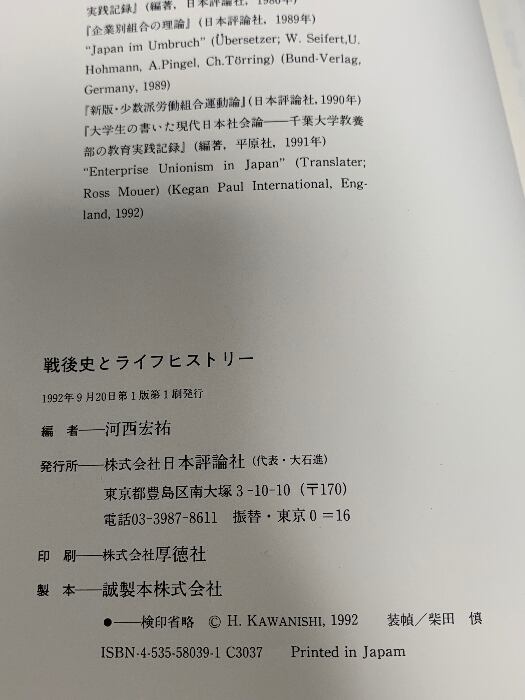 タイトル:戦後史とライフヒストリー: 千葉大学教養部の教育実践記録 日本評論社 河西 宏祐