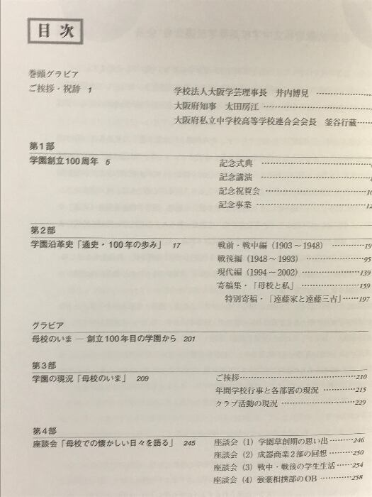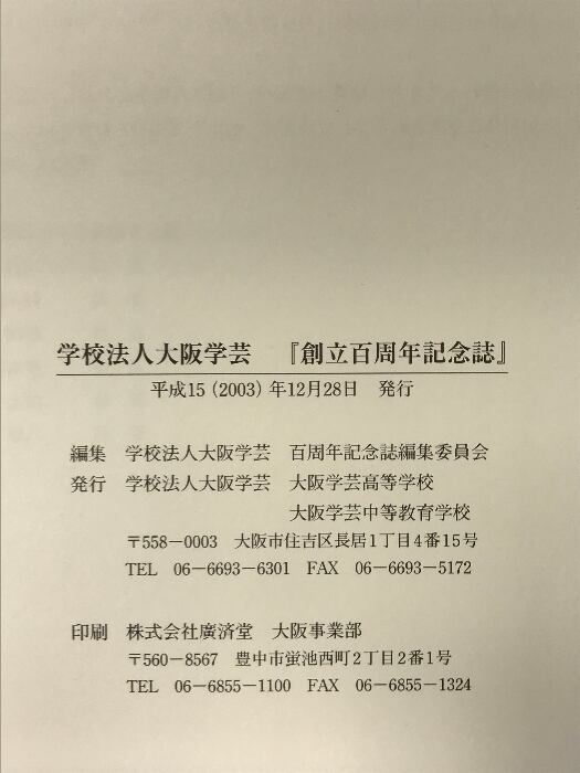 タイトル:創立百周年記念誌 学校法人大阪学芸 平成15年 発行: 学校法人大阪学芸高等学校 学校法人大阪学芸中等教育学校 (大阪市)