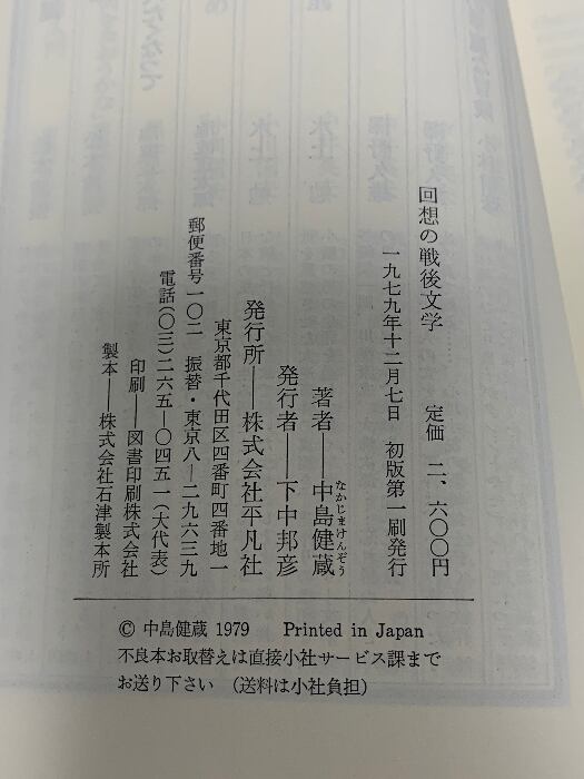 タイトル:回想の戦後文学―敗戦から六〇年安保まで 平凡社 中島健蔵