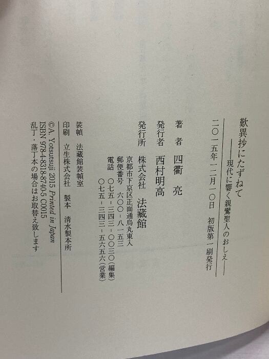 歎異抄にたずねて: 現代に響く親鸞聖人のおしえ 法蔵館 四衢 亮