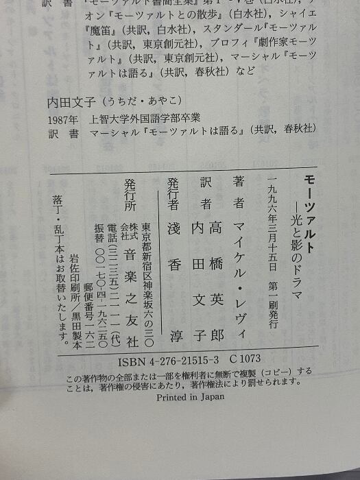 モーツァルト 光と影のドラマ 音楽之友社 マイケル レヴィ 音楽之友社 マイケル レヴィ