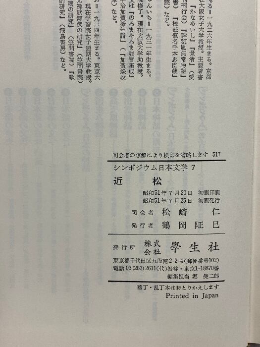 タイトル:シンポジウム日本文学〈7〉近松 (1976年) 学生社